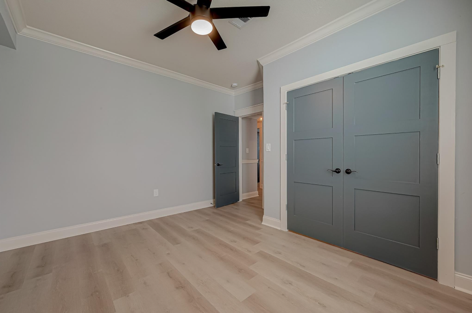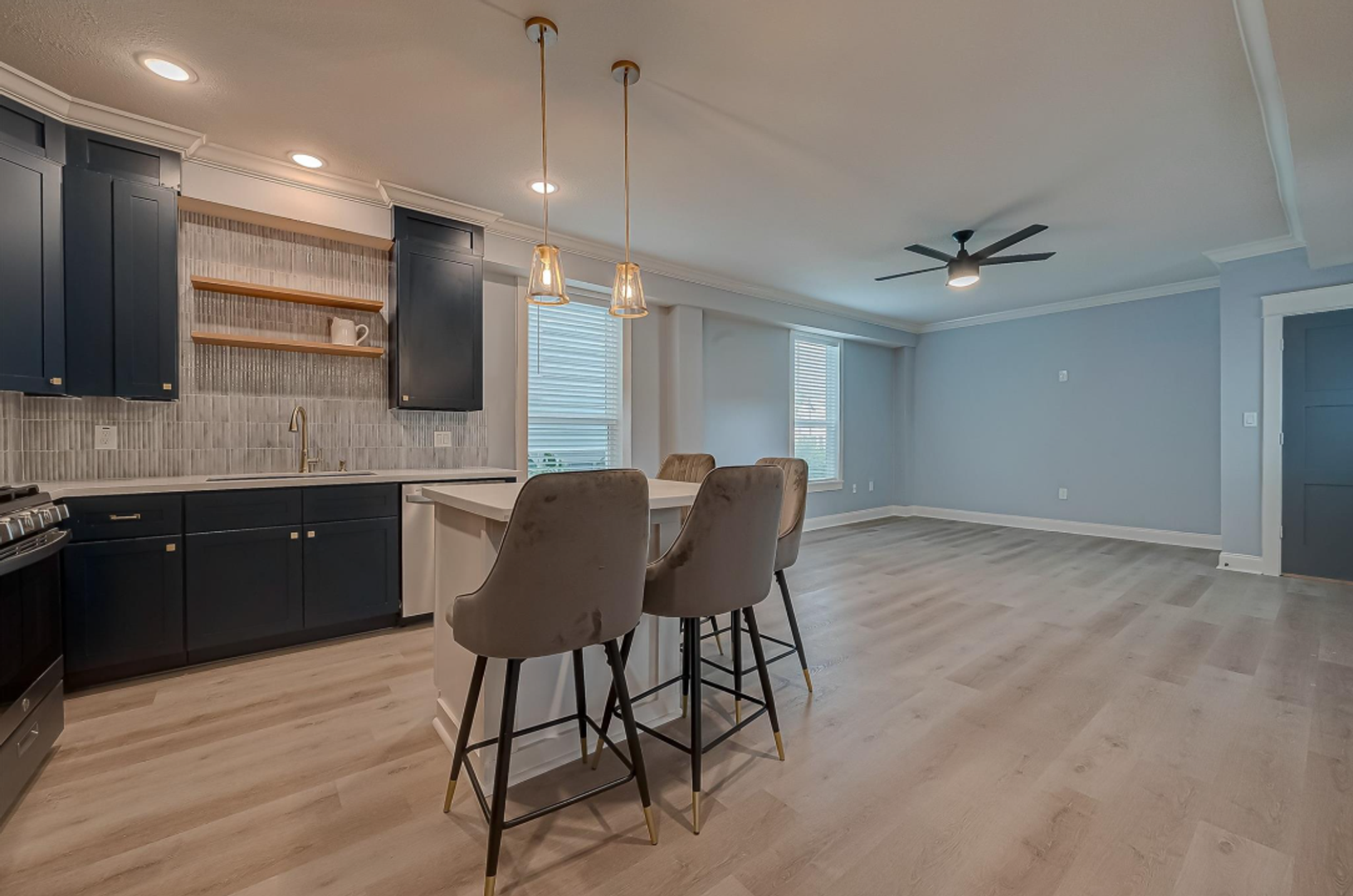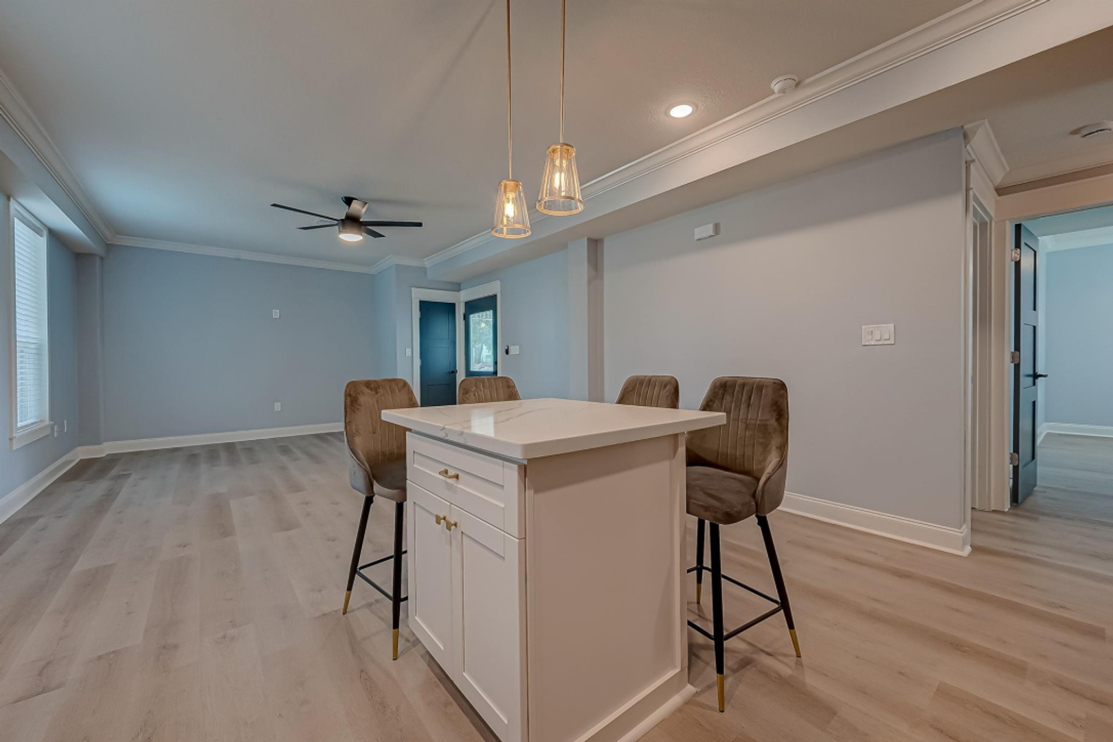 Welcome to this beautifully remodeled downstairs unit just minutes from the Galveston shoreline. Hear the waves from your expansive front deck!! PERFECT FOR UTMB STUDENTS!! This 3/2 full home was thoughtfully updated from the studs up and offers high ceilings, crown molding, and an open living and dining layout that feels bright and inviting. The kitchen shines with quartz countertops, rich blue soft close cabinetry, a gas range, SS appliances, and a spacious island perfect for everyday living or entertaining. The primary suite features an en-suite bath with double sinks, a separate enclosed shower, and a walk-in closet. The secondary bath includes a jetted tub and the convenience of an in-unit washer and dryer. Enjoy relaxing on the oversized covered front porch just blocks from the beach. One garage space available. A wonderful opportunity to enjoy easy coastal living. **$75/month water utility reimbursement fee**